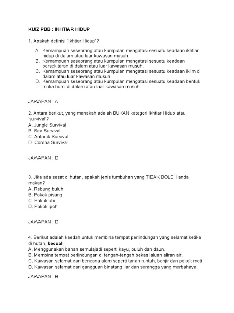 Contoh Soalan Quiz Pbbu